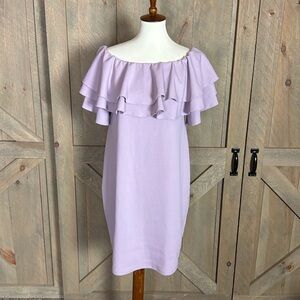 Pink blush mauve pink layered ruffle off shoulder fitted maternity dress Large