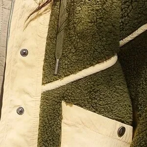 Features: Colorblock fleece jacket; durable construction with contrast nylon paneling; snap-button front closure; adjustable drawstring hood; large waist pockets; elasticized rib-knit trim; buti logo patch at back.