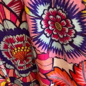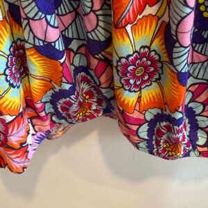 Bright floral blouse with a mix of vibrant colors. Features a relaxed fit and eye-catching design.Elastic on bottom, rayon, size large