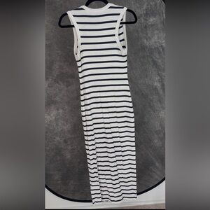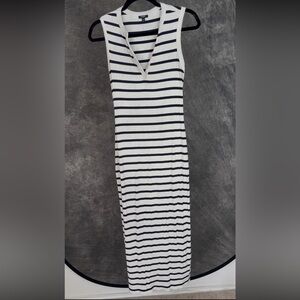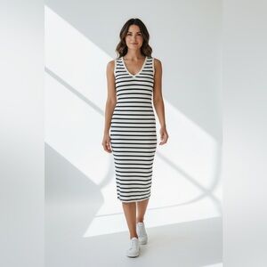 express dress, striped midi dress, black and white dress, ribbed midi, v neck dress, sleeveless midi dress, bodycon midi, minimalist dress, classic stripe dress, clean girl aesthetic