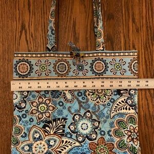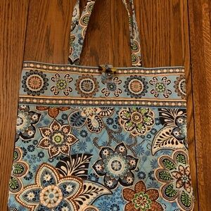 Charming tote with intricate floral patterns. Features blue and brown hues. Ideal for daily use.