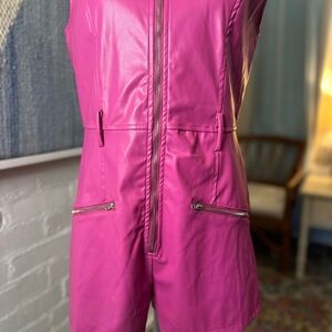 NWT Fashion Nova Pink Pleather Zip Up Romper