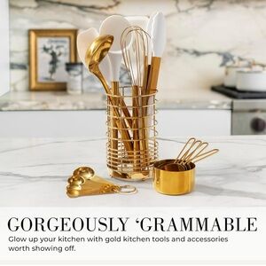 Elegant Gold and White Kitchen Utensils Set - Styled Settings