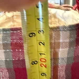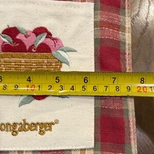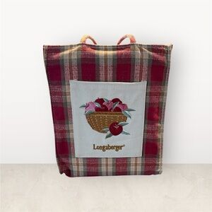 Red plaid bag with apple basket design. Embroidered Longaberger logo. Perfect for kitchen storage.