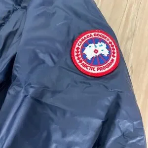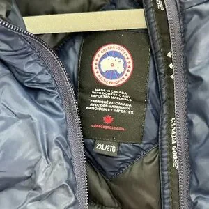 Warm puffer jacket with hood. Ideal for cold weather. Features Canada Goose logo. Size 2XL excellent used condition