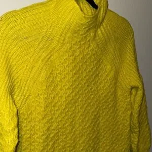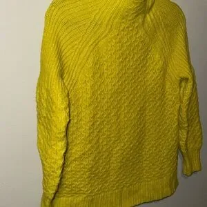 Beautiful and soft oversized cable knit mock neck sweater by Anthropologie in a yellow color with puffy sleeves, size XS. Alpaca blend.