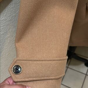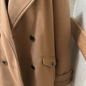 Stay stylish and warm with this elegant tan double-breasted coat. Perfect for any occasion, this coat offers a timeless look and comfortable fit. Size M. Never been worn, NWT! Excellent condition! Perfect camel color coat; classic staple for capsule wardrobe!