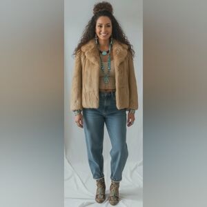 Stunning Absolutely Beautiful Gently Pre-Loved No Issues Vintage Retro Y2k Soft Rabbit Fur Made in Korea Side Pockets Holiday Christmas Gift Warm Winter Fashionable Minimalist Modern Must-Have Clean Inside And Out Smoke and Pet Free Environment Farmhouse Boho Cropped Champagne 80 90 Hipster