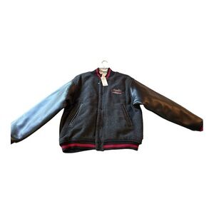 Vintage Men Disney Mickey Mouse Embroidered Varsity Blk Wool Leather Jacket S