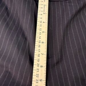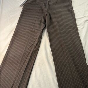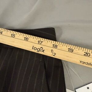 The Lafayette 148 New York pin striped women's pants are stylish and sophisticated dress pants designed for women in size 14. Made from wool in a brown color, these wide-leg pants feature a flat front design with a zip and button closure. The classic striped pattern adds a touch of elegance to the wardrobe staple, perfect for a chic and polished look in any professional or formal setting.
