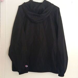 Stay stylish with this black hooded Champion water resistant jacket. Perfect for any casual outing. size large