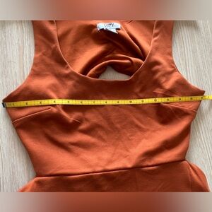 SUZY SHIER 16” PTP Midi Dress with Back Cutout, Terracotta, Size Large.