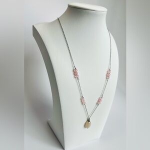 Gorgeous rose quartz briolette drop pendant necklace, with additional beads decorating the fine cable chain.