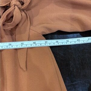 Color is close to brown nutmeg color. It’s really hard to describe. Best color closeness is the dress hanging pictures