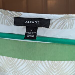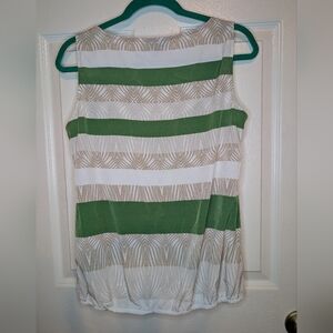 Alfani Sleeveless Pleated Blouse Women's Size 8 Scoop Neck Striped Green Tan White