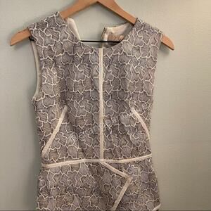 Gorgeous fitted gray/white sheath cocktail dress from high end designer Lela Rose