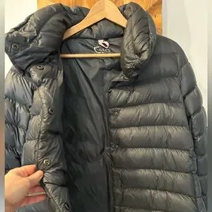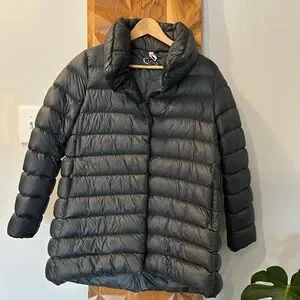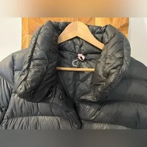 Experience warmth and style with the Cotes of London Women's Down Puffer Jacket. This dark grey down coat is perfect for cold weather, combining lightweight comfort with a sleek design. This warm down jacket is button up with zippered pockets. Roomy size Medium.
