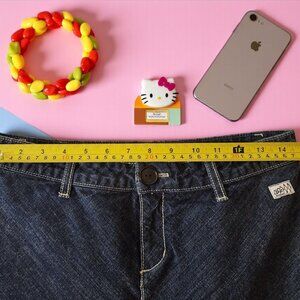 Throw it back in this Paul Frank denim mini skirt — a total early 2000s vibe! Made in the USA, this blue jean skirt features contrast white stitching, faux front pocket styling, back patch pockets, and that signature Paul Frank patch logo detail. It's fitted, flirty, and perfect for anyone channeling their inner retro rebel.