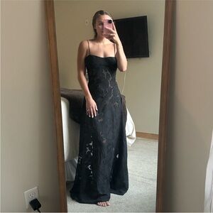 stunning black lace evening gown by Showpo in size medium. Perfect for any formal occasion, this dress combines sophistication with a modern touch. Never worn, new with tag!