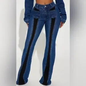 Sexy Splitting Ways Stretch Flare Jeans - Medium Wash in size 14