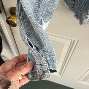 Zenana Women’s Large Outfitters Blue Denim Jacket with White Stars 100% cotton