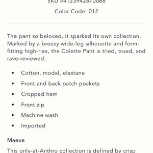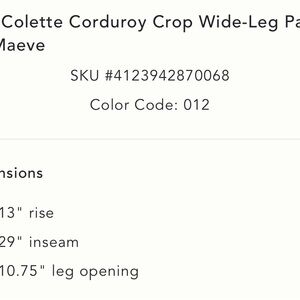 Anthropologie Maeve Colette cord corduroy crop pants 16