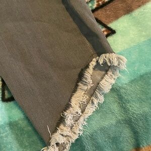Chic gray jeans with delicate floral embroidery. Ideal for a stylish look. Featuring frayed ends that hit at the ankle. NWOT
