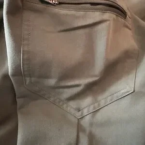 Moss green scrub set. Soft and durable fabric. Ideal for healthcare professionals. Top is a one pocket medium. Bottoms are a medium petite joggers.
