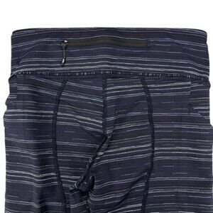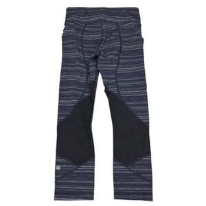 LULULEMON Pace Rival Crop Leggings Cyber Stripe Naval Blue Black Womens Size 4