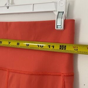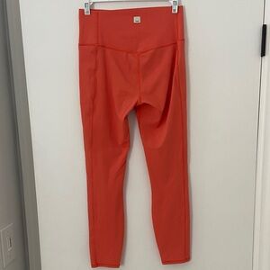 Vibrant orange high-waisted leggings. Perfect for workouts or casual wear.