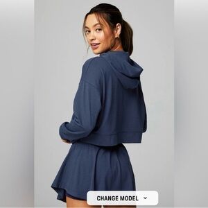 Fabletics Cloud Jersey Cropped Hoodie Deep Navy Heather Women's XS