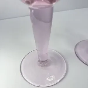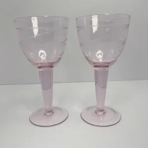 Vintage Pink MCM Wine Glasses Etched Swirl Pattern Thick Stem Set of 2
