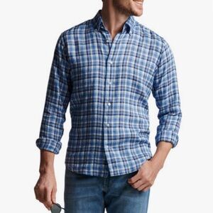 Peter Millar Crown Crafted Bella Vue Linen Flex Finish Sport Shirt in Pearl Blue