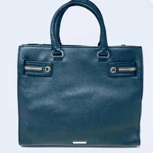 Rebecca Minkoff Geneva Grained Cowhide Blue Leather Women's Handbag Size: Medium. Comes with two leather rolled handles w