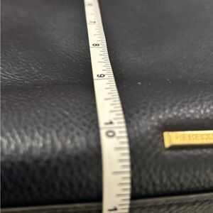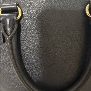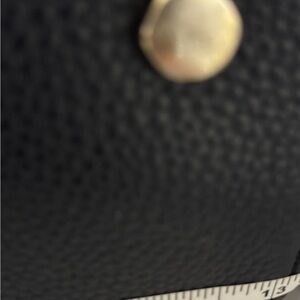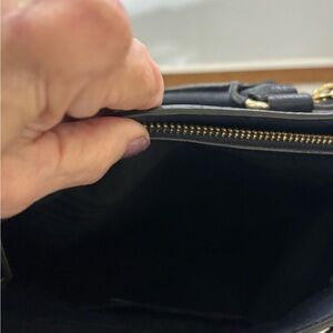Gold-tone hardware. Features logo metal plate on the backside with decorative zippers, one main open compartment with interior zipper closure divider, two slip pockets, and one side zip pocket. Measurements: Length 12 inches, Height 10 inches, Depth 5 inches. metal part. No original box, shoulder strap and dust bag included.