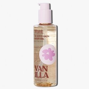 Experience the rich vanilla aroma with PINK's Glazed Body Oil. Perfect for silky smooth skin.