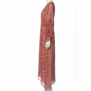 Alice + Olivia Pink Silk Chiffon Long Dress Sz S Paisley Print V-Neck Slit Gown