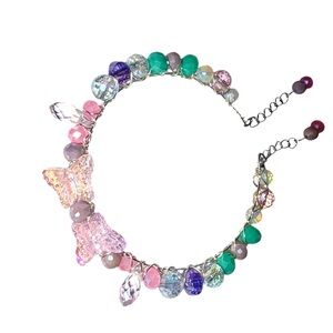Hand wired bracelet with Czech Glass Butterflies and multiple crystal beads.