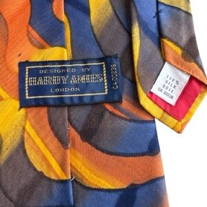 Colorful Hardy Amies London silk tie in an abstract design with vibrant orange, blue, yellow & brown hues. Elevate your style with this multicolor abstract men's tie.