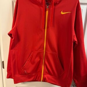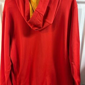 Vibrant red Nike men’s sweatshirt. Features bold yellow accents.