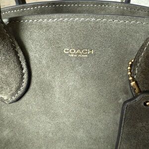 Chic Coach satchel in olive green suede. Stylish and versatile for any outfit. Used only twice! Hard to find sold out item!! Comes with dust bag and cross body strap.