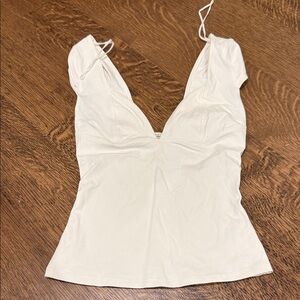 Chic white crop top with a deep V-neck. Perfect for casual outings. Soft fabric for comfort.