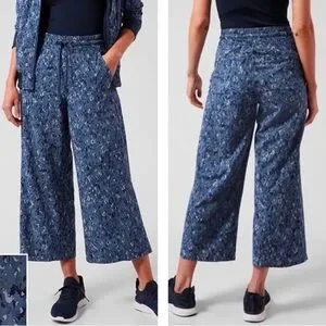Athleta Avenue Wide Leg Crop Pants in blue print size 10