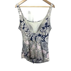 KUNY BARCELONA Women's Paisley Floral Tankini One Piece Swimsuit Pink Size 16