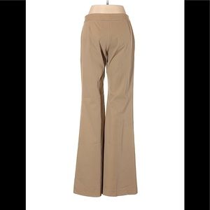 Elegant tan flare pants. Fairly certain they are the Theory demitria pants. (I own several pairs.) Perfect for a chic look.