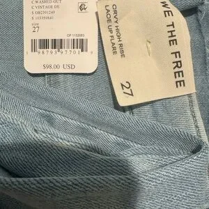 Free People We The Free CRVY Super High-Rise Lace-Up Flare Jeans in washed out color, regular 27. Perfect for a stylish look.