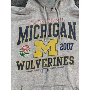 Michigan Wolverines Hoodie Sweatshirt Mens Gray NCAA Rose Bowl 2007 Distressed