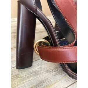 Tom Ford Brown Leather Strappy Block Heel Sandals Sz 39 Made in Italy - No Box