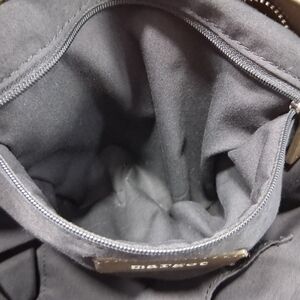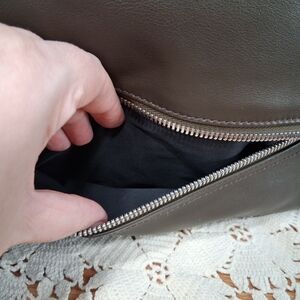 Gorgeous soft, supple fully leather body in a rich green/brown. Zipper pouch on lower outside, perfect for keys. Inner zipper and pouch pockets. Great condition with minimal wear. No cracks or splits.