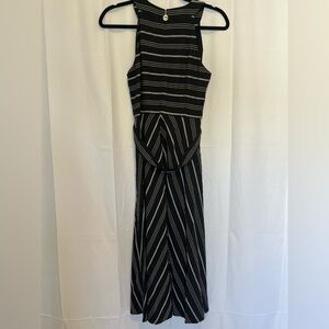 Tommy Hilfiger Women's Black White Stripe Fit Flare Sleeveless Dress Belted 4
